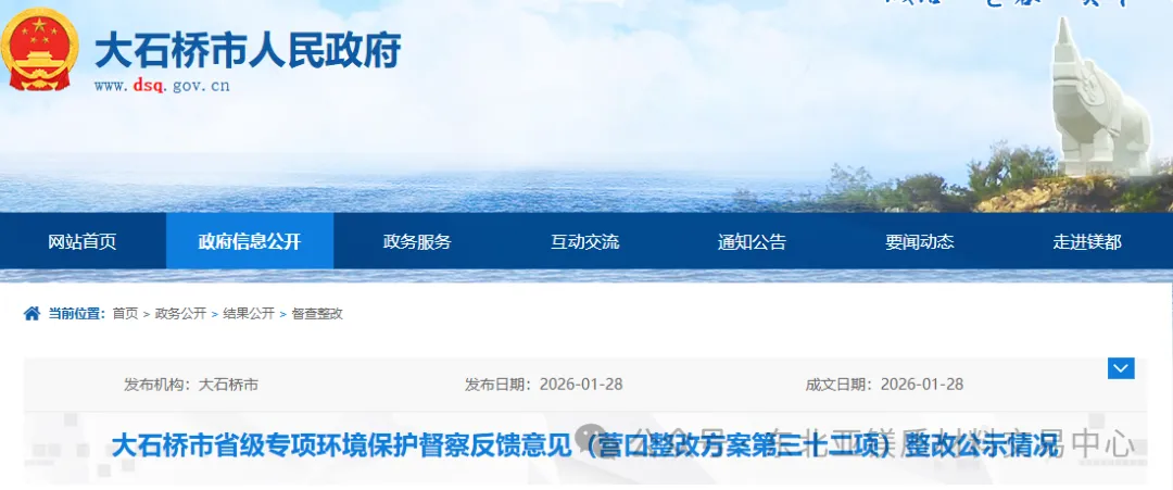 以上整改情況向社會公示,如有異議,請以書面或電話形式,向大石橋市環(huán)境保護督察整改工作領(lǐng)導(dǎo)小組辦公室、大石橋市發(fā)改局反映。郵寄的以郵戳為準,直接送達的以送達日期為準。